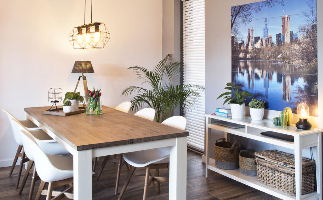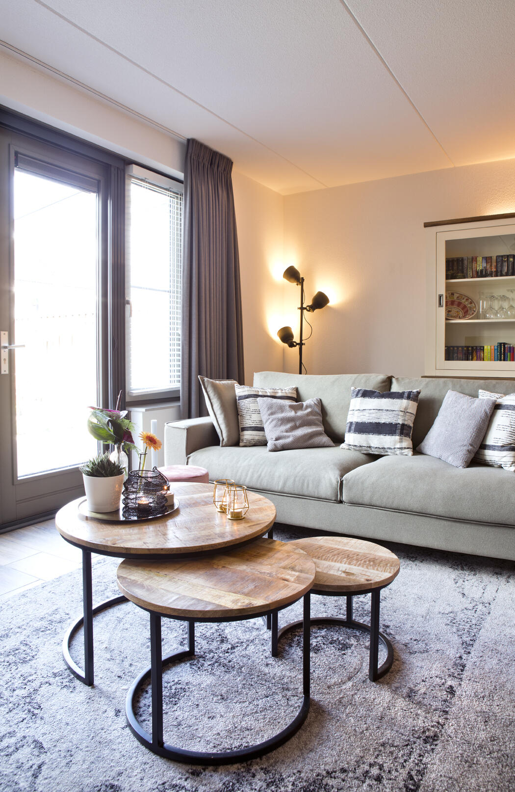 Voor de inrichting en afwerking van hun huis kozen Emma en Diederik voor een combinatie van Scandinavisch en industrieel. “Rustig en tijdloos was het uitgangspunt”, zegt Emma. Op de vloer is een tegelvloer in houtlook gelegd, gekocht bij het Whoon Warenhuys. De vloer (met vloerwarming uiteraard) oogt warm en is toch makkelijk schoon te houden.