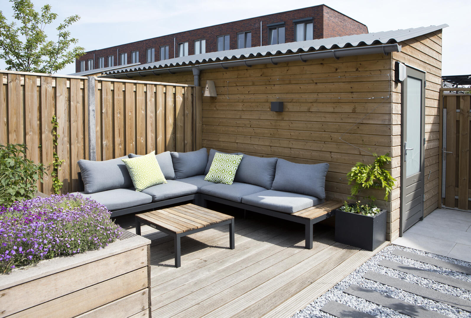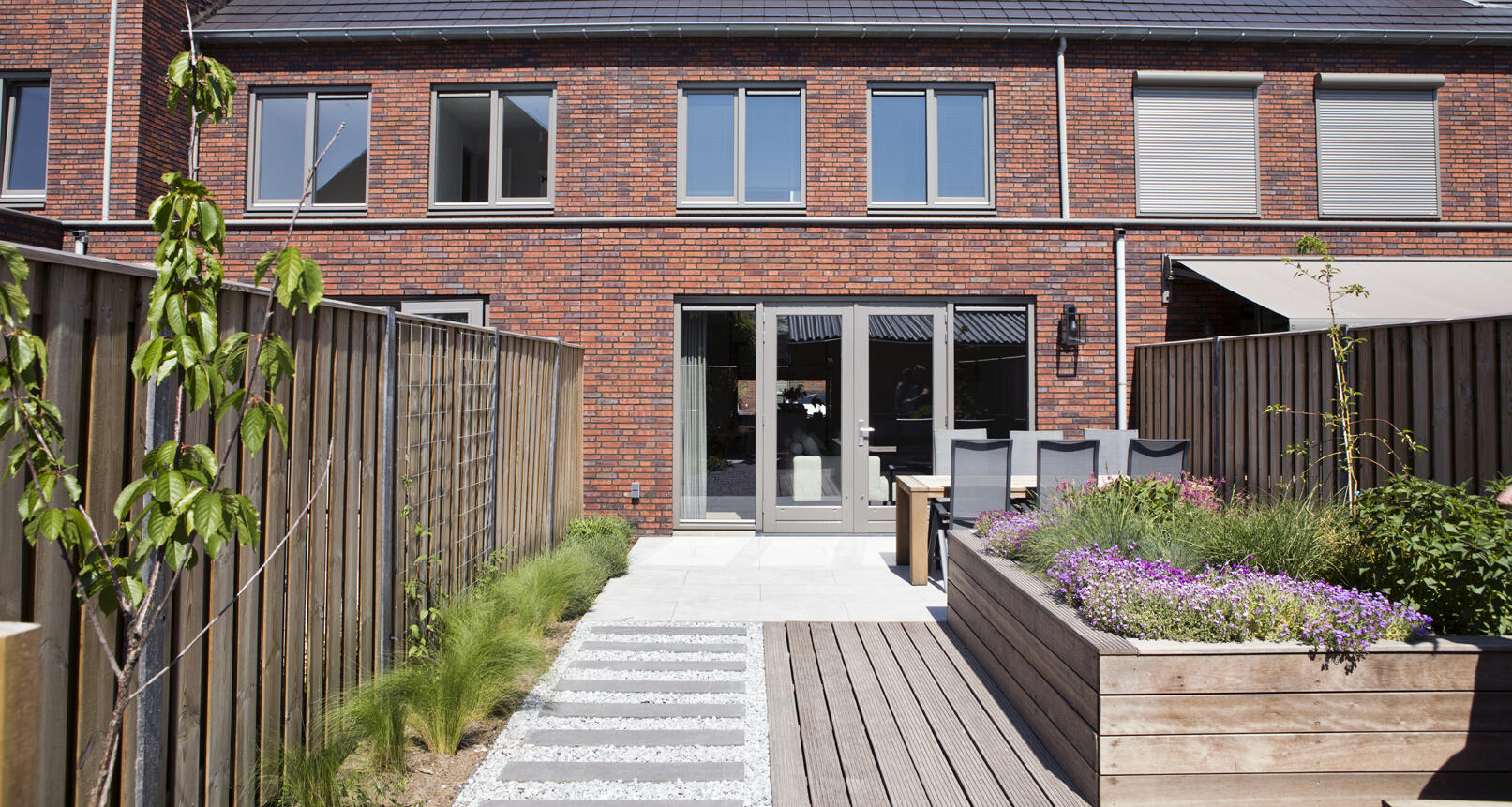 Mathijs heeft er alles aan gedaan om de woning zo ruim mogelijk te maken en benutte vrijwel alle mogelijkheden die de ontwikkelaar te bieden had. In de eerste plaats was dat een uitbouw van 2,40 meter over de volle breedte aan de achterzijde van de woning. “Dat geeft direct al veel meer indelingsmogelijkheden.” Bij goed weer kan hij de leefruimte op de benedenverdieping nog aanzienlijk vergroten dankzij de openslaande tuindeuren. “Dat geeft toch een veel ruimtelijker indruk dan een schuifpui.” De tuin biedt met een eettafel tegen het huis aan en een loungehoek aan de achterkant volop mogelijkheden voor een aangenaam verblijf.