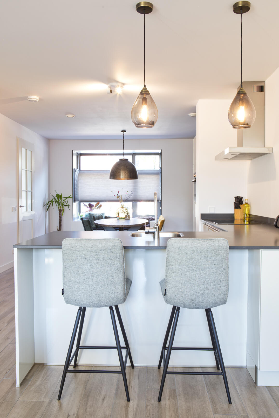De architectuur van de woningen spreekt ons aan, een beetje industriële sfeer. ”René en Anouk kozen voor een uitbouw van 2,40 meter over de volle breedte van de woning. “Eigenlijk heeft iedereen in de straat daar wel voor gekozen. Dat geeft een hoop extra ruimte en het biedt meer mogelijkheden om de woonkamer en de keuken naar eigen wens in te delen.”